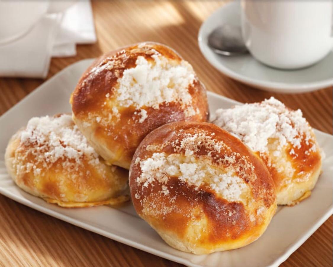 Cuando los bollos hayan doblado su volumen, píntelos de nuevo con el huevo batido, hágales un corte a lo largo y ponga el azúcar humedecido a lo largo del corte. Hornee en 2 tandas durante 7 minutos (240°C). Retire del horno, deje templar y sirva.