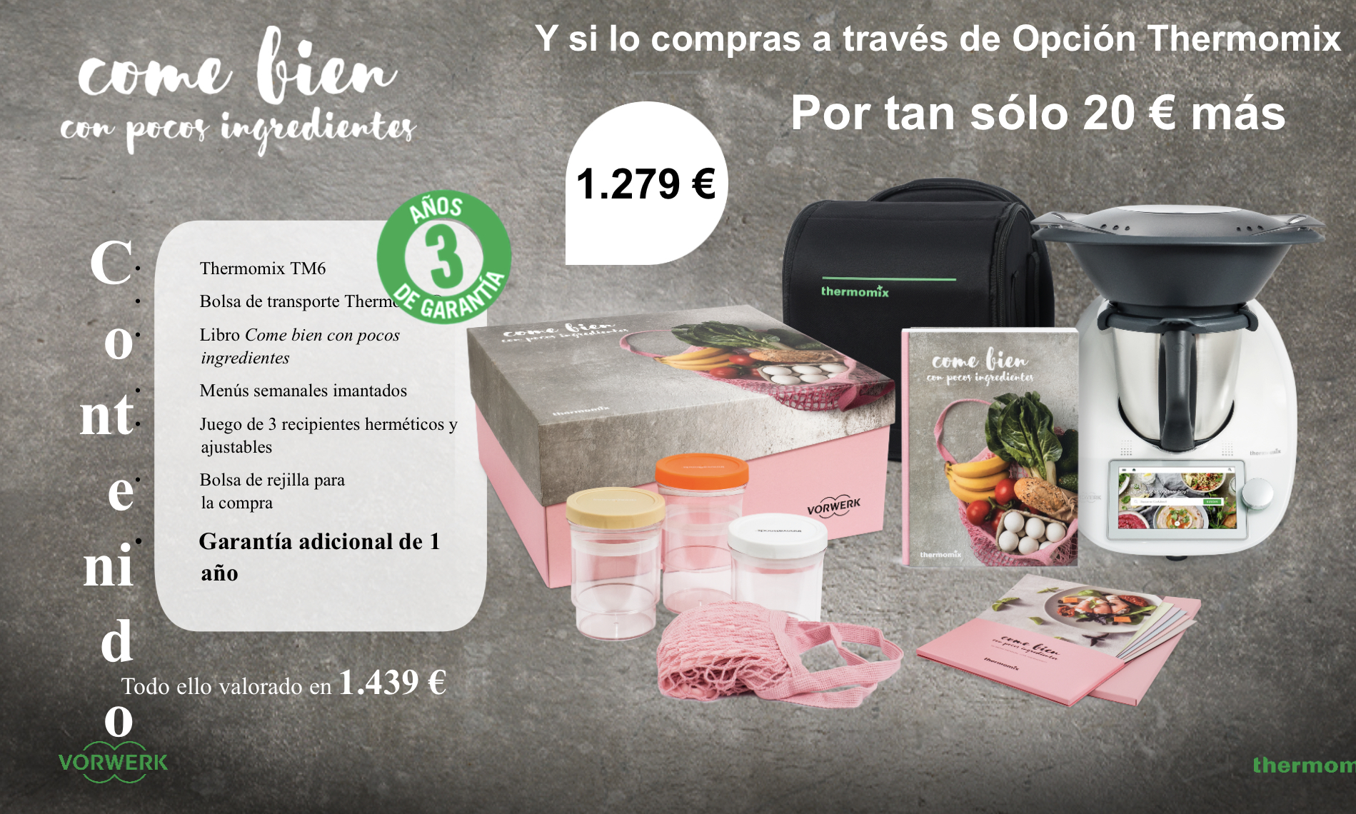 1 Euro al día y tienes tu Thermomix con 3 años de garantía, un libro maravilloso, la bolsa de transporte y mas,...