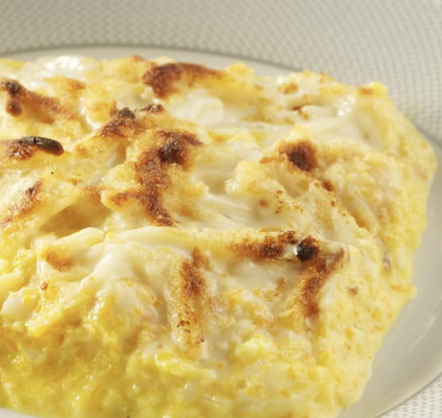 Espolvoree la superficie con el pan rallado y unos trocitos de mantequilla y gratine durante 10 minutos o hasta que la superficie esté dorada. Sirva inmediatamente.
