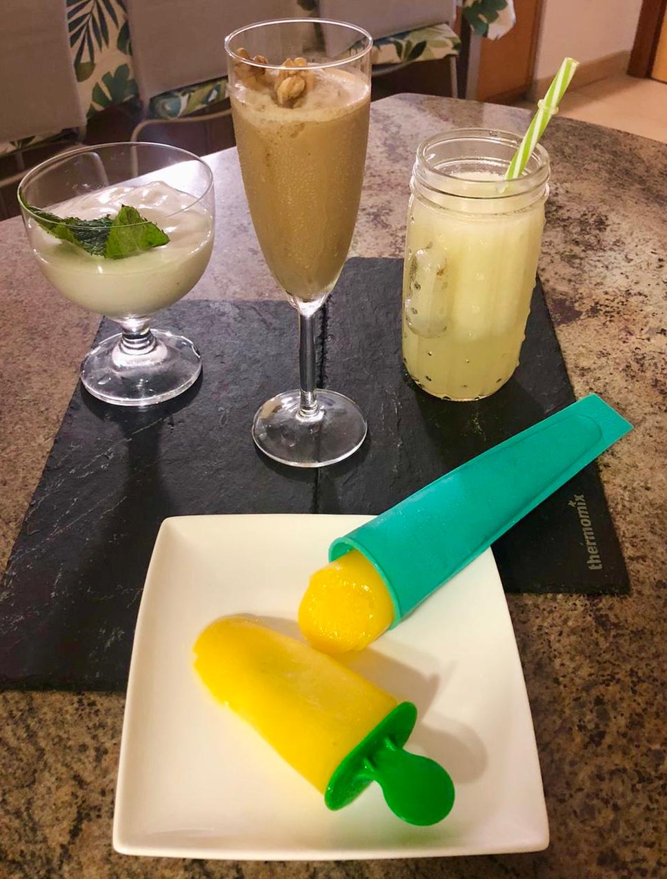 Ponga en el vaso la pulpa de mango, el hielo, el zumo de limón y el almíbar reservado y triture 1 min/vel 10. Rellene 8 bolsas de uso alimentario (de 8x12 cm) con cierre hermético y congele durante aprox. 6 horas.