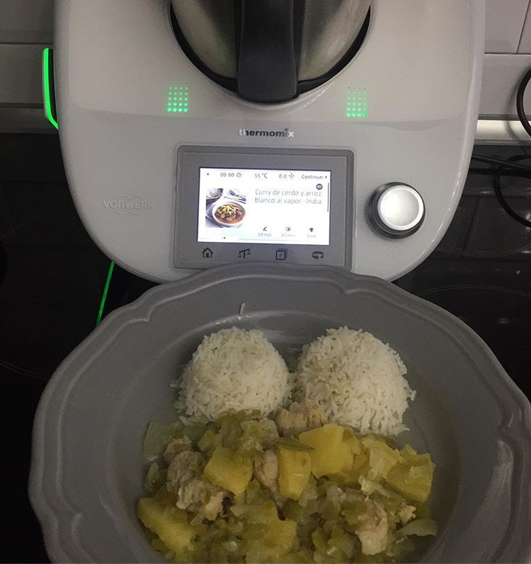 CURRY DE CERDO Y ARROZ BLANCO AL VAPOR-INDIA