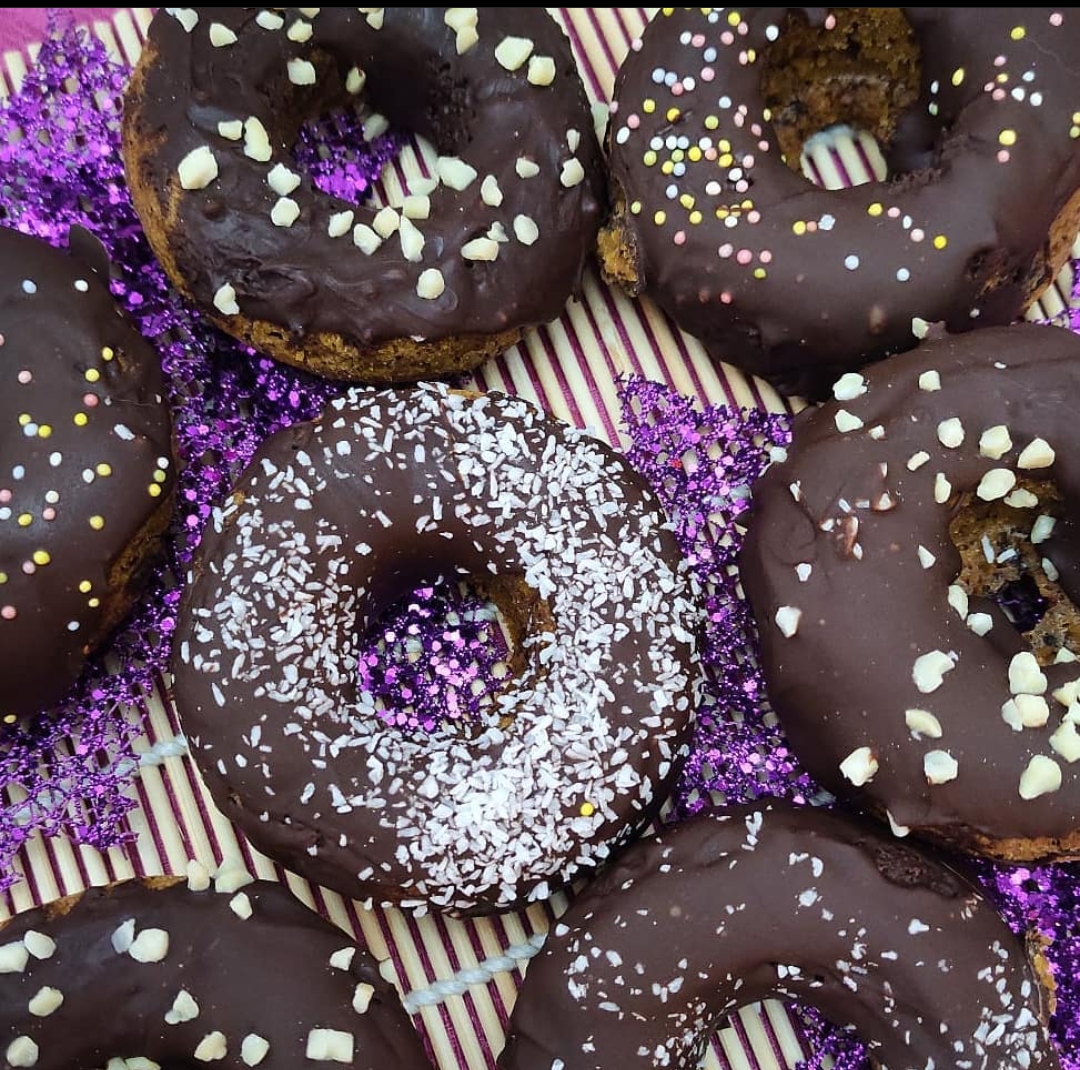 1.Precaliente el horno a 180°C. Engrase con aceite de oliva los moldes para rosquillas y reserve.