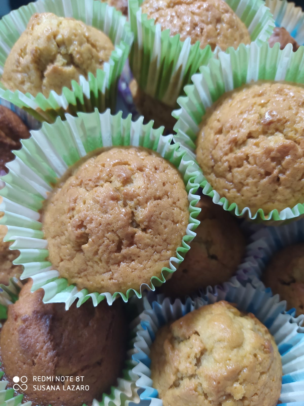 Quedan unas magdalenas húmedas, blanditas, sin copete. En algunas variantes he visto que le hacen un frosting de queso, pero yo las prefiero así, para mojar en leche.Podemos hacer infinitas variantes, cambiandole parte de la harina por harina de almendras, o añadiendo nueces picadas, o pepitas de chocolate, o crema de avellanas y choco, o mermelada.... decidir vosotros!!