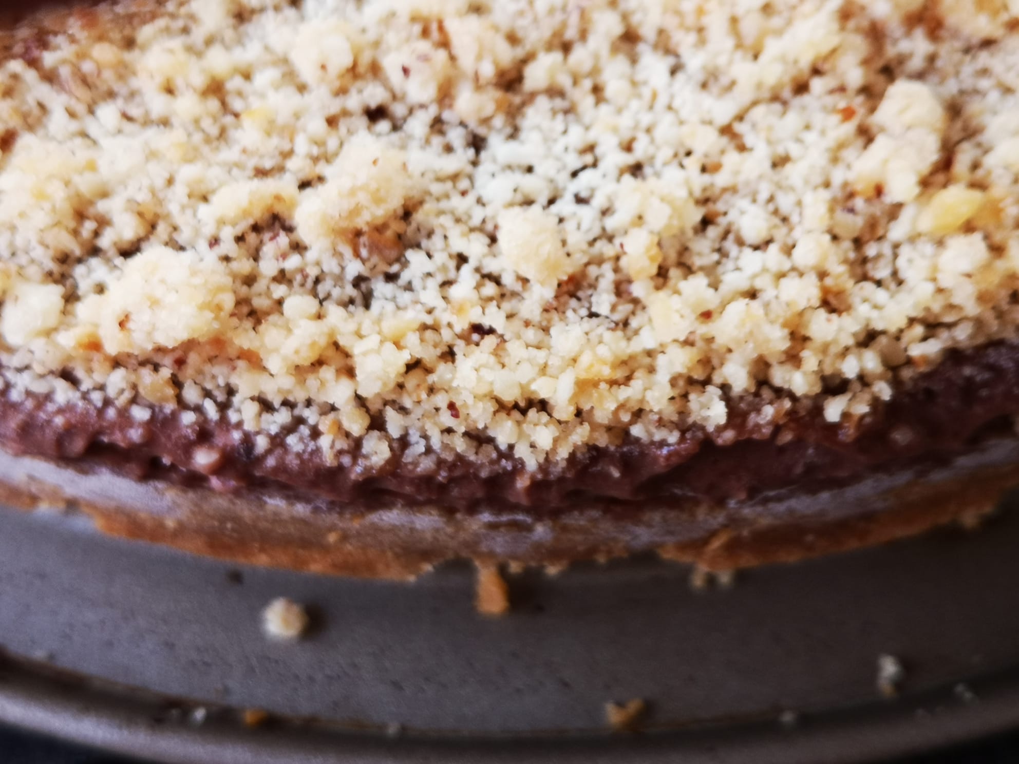 3. Añada la crema de cacao y mezcle 15 seg/vel 6. Con la espátula, baje los ingredientes hacia el fondo del vaso y vuelva a mezclar 15 seg/vel 6. Vierta la mezcla sobre la base de galletas y espolvoree con las avellanas reservadas. Introduzca la tarta en el congelador un mínimo de 2-3 horas antes de servir.